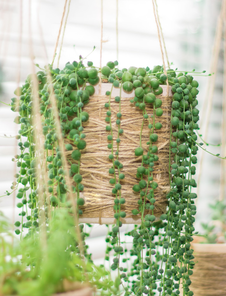 Choose plants that are suitable for growing vertically: ivy, ferns, tillandsia or grasses, aromatic herbs such as mint, rosemary, sage and thyme, and succulents.