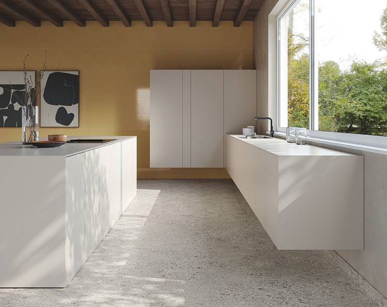 Tough, exquisite and authentic, Fap ceramiche porcelain stoneware surfaces reinterpret the character of concrete with a soft feel and appearance ideal for contemporary interiors.