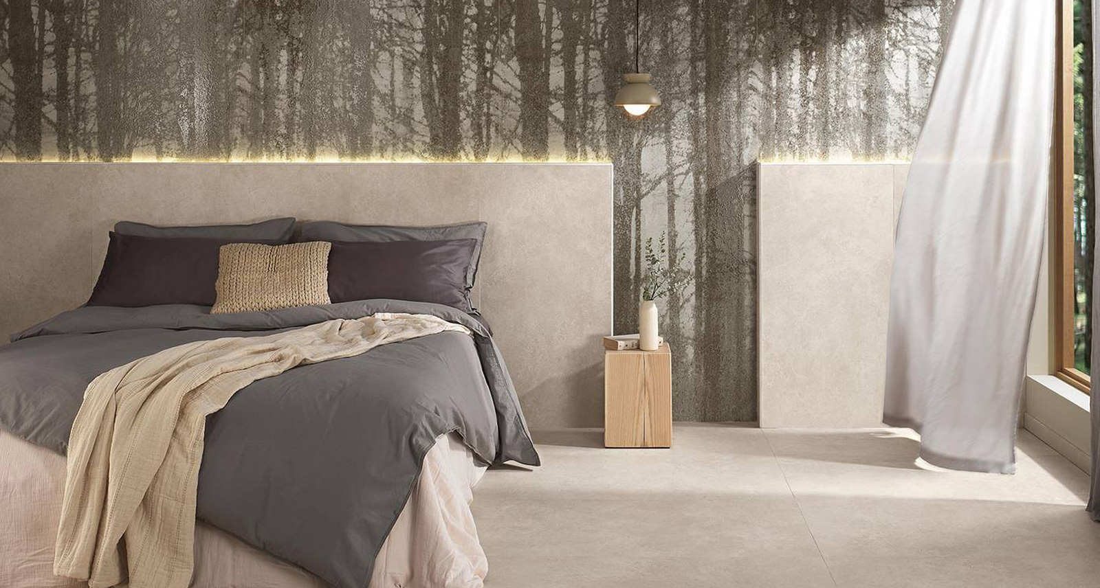 Decorative wall tiles offer the opportunity to create a restful, regenerating atmosphere, by creating an authentic forest in the bedroom.