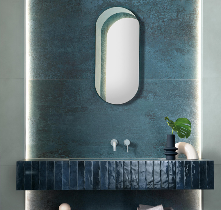 The frames of designer mirrors can become an important furnishing accessory, combining practicality and aesthetics in a single element. They can act as a guide for choosing the overall décor, including washbasins, floors, shower trays, boiseries, niches and shelves.