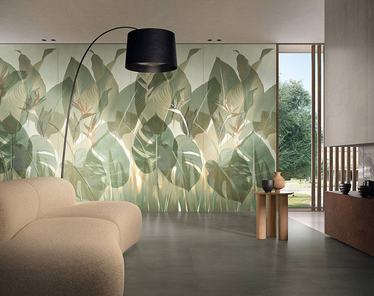 The format, colour and installation choices contribute to expanding the sense of brightness and spaciousness of a room, including through the optical effects which can be created with the tiles.