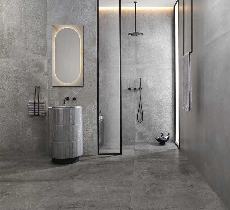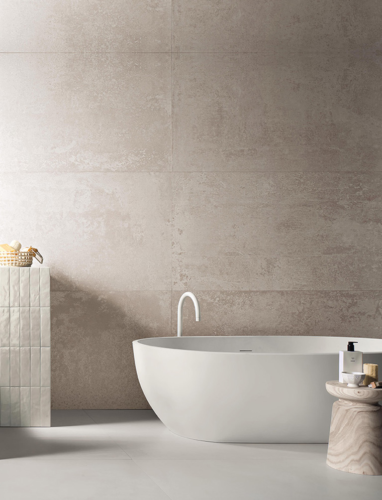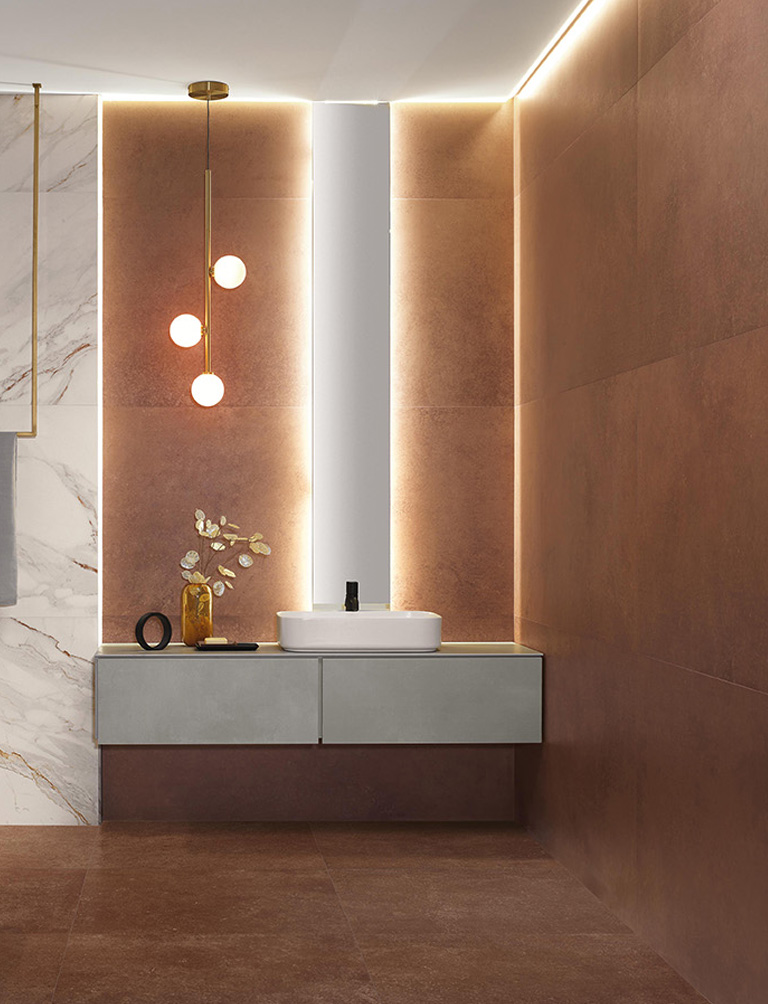FAP interprets this trend with OXIDE: metal-effect stoneware and wall tiles characterised by oxidations that evoke urban, industrial moods yet seem to be the work of rain, sun, wind and the passing of time.