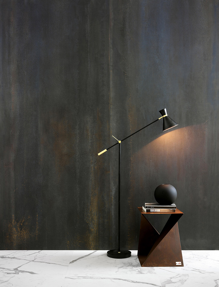 The oxidised metal effect, in particular, offers unique, distinctive design with the power to become the focal point of an interior and transform it with an immaculately contemporary look.