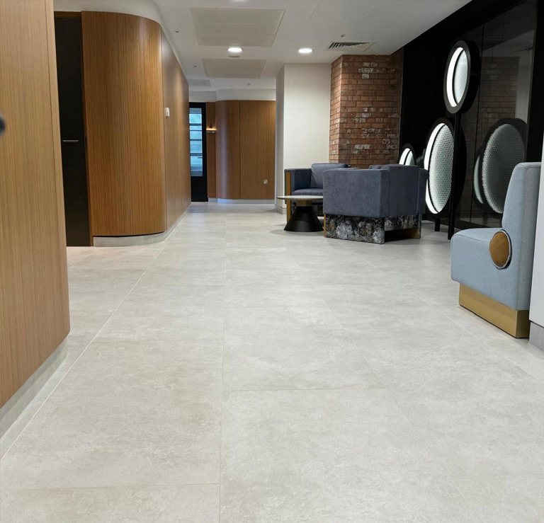 Here FAP Ceramiche’s NOBU porcelain stoneware not only beautifies the interior but also provides all the durability and easy maintenance fundamental in a healthcare setting.