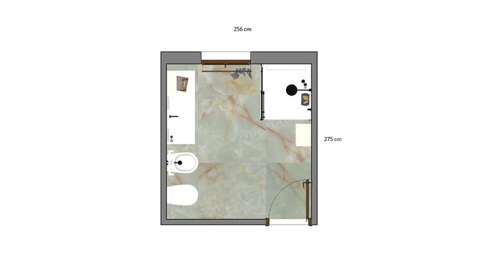 Bathroom design image in Squared shape, created with floor tiles GEMME and wall tiles PLEIN AIR, GEMME