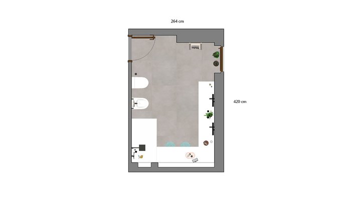 Bathroom design image in Rectangular shape, created with floor tiles MILANO&FLOOR and wall tiles STILL, TRUE COLOR