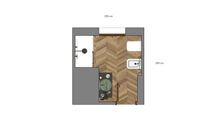 Bathroom design image in Squared shape, created with floor tiles FAPNEST and wall tiles MATERIA CLASSICA