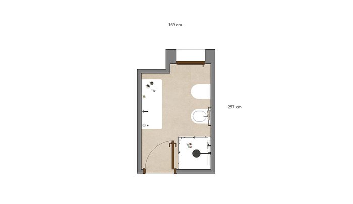 Bathroom design image in Rectangular shape, created with floor tiles MATERIA PURA and wall tiles MATERIA PURA