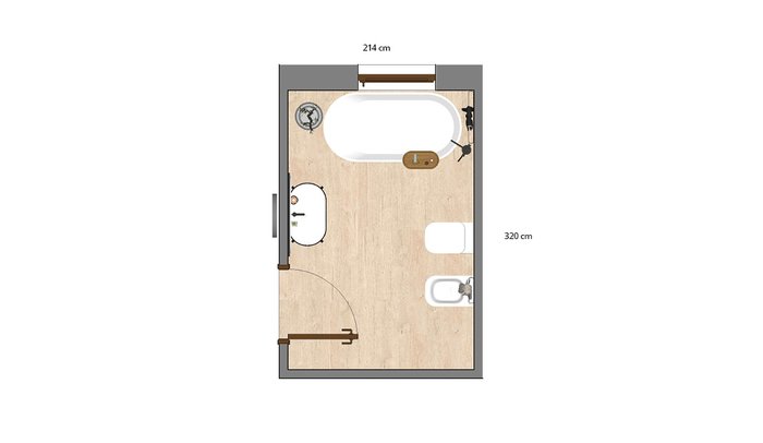 Bathroom design image in Rectangular shape, created with floor tiles PLEIN AIR and wall tiles TRUE COLOR