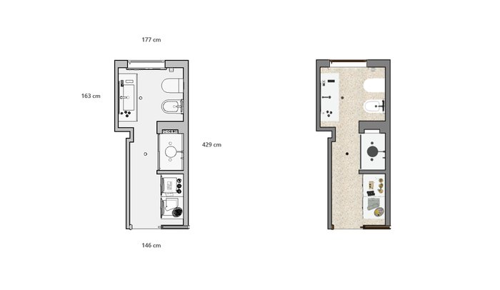 Bathroom design image in Rectangular shape, created with floor tiles GLIM and wall tiles GLIM