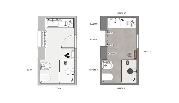 Bathroom design image in Rectangular shape, created with wall tiles LUMINA STONE