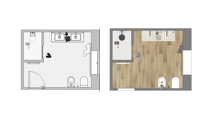 Bathroom design image in Squared shape, created with floor tiles FAPNEST and wall tiles MAKU