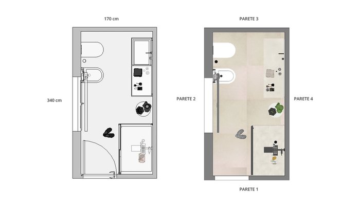 Bathroom design image in Rectangular shape, created with floor tiles SUMMER and wall tiles SUMMER