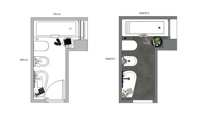 Bathroom design image in Rectangular shape, created with floor tiles MILANO MOOD and wall tiles MILANO MOOD
