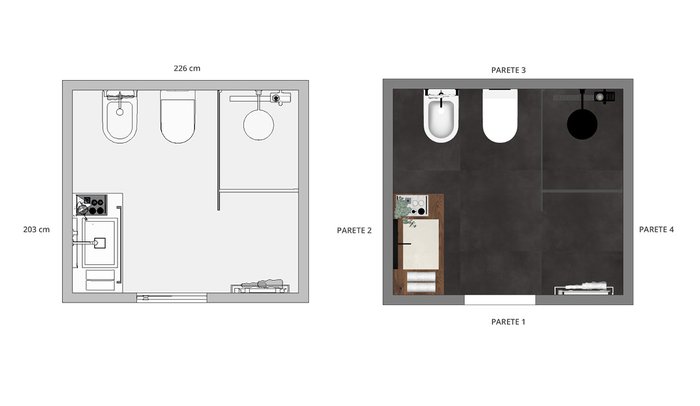 Bathroom design image in Squared shape, created with floor tiles MILANO MOOD and wall tiles MILANO MOOD