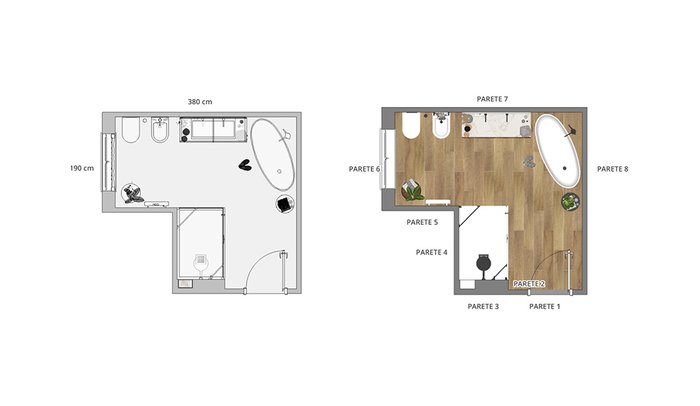 Bathroom design image in Rectangular shape, created with floor tiles FAPNEST and wall tiles ROMA GOLD