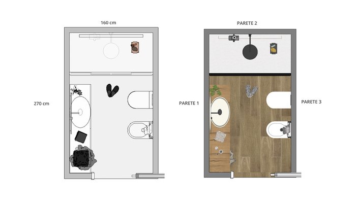 Bathroom design image in Rectangular shape, created with floor tiles FAPNEST and wall tiles BLOOM, FAP MURALS