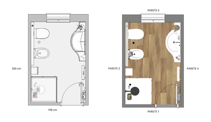Bathroom design image in Rectangular shape, created with floor tiles FAPNEST and wall tiles BLOOM