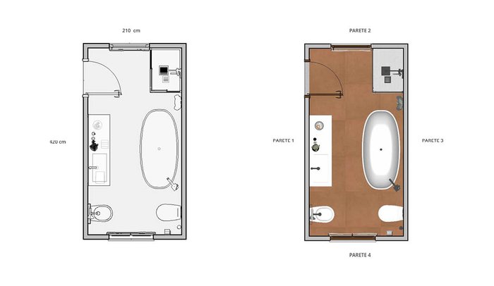 Bathroom design image in Rectangular shape, created with floor tiles SUMMER and wall tiles LUMINA SAND ART, SUMMER