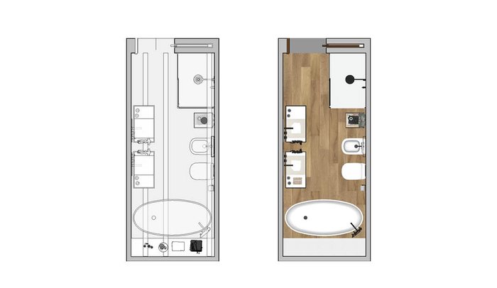Bathroom design image in Rectangular shape, created with floor tiles FAPNEST and wall tiles DECO&MORE