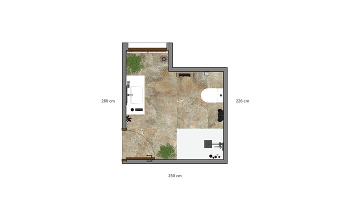 Bathroom design image in Squared shape, created with floor tiles NOBU and wall tiles NOBU