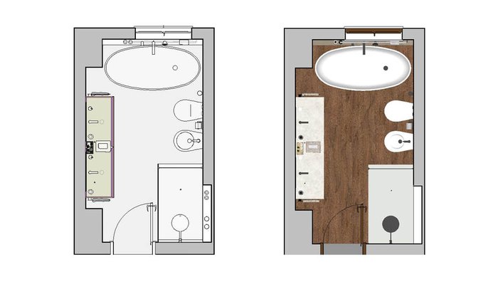 Bathroom design image in Rectangular shape, created with floor tiles ROOTS and wall tiles SHEER, FAP MURALS