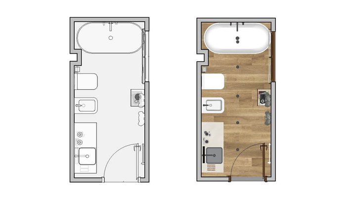 Bathroom design image in Rectangular shape, created with floor tiles FAPNEST and wall tiles BLOOM, FAP MURALS