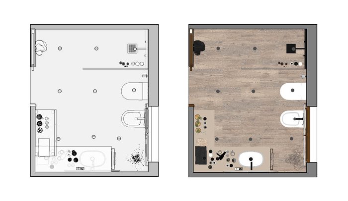 Bathroom design image in Rectangular shape, created with floor tiles ROOTS and wall tiles YLICO