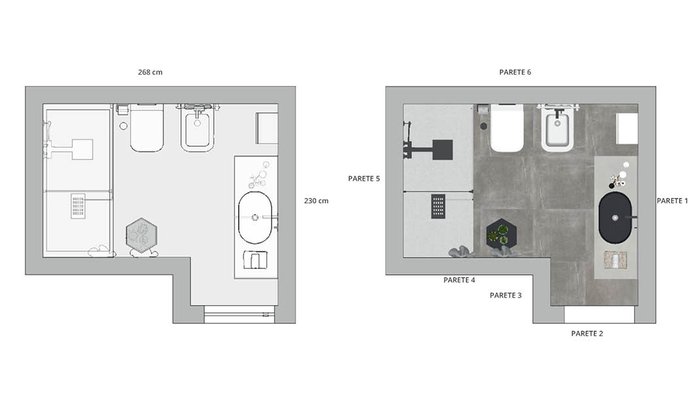 Image du projet de salle de bains de forme Au carré, réalisée avec des carreaux de sol MAKU et carreaux muraux ROMA DIAMOND
